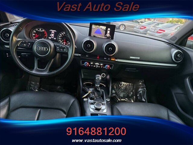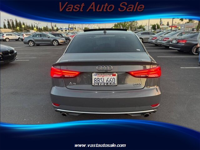 Presenting the 2018 Audi A3 2.0T quattro Premium in a striking Cosmos Blue Metallic exterior with a sophisticated Black interior. Powered by a robust 2.0L Turbo I4 engine generating 220hp and 258ft. lbs. of torque, this sedan offers a perfect blend of performance and efficiency, achieving 24 MPG in the city and 31 MPG on the highway. The factory default features of this Audi include a panoramic sunroof, leather upholstery, heated front seats, dual-zone automatic climate control, Audi pre sense basic and city, a rearview camera, and a 10-speaker audio system. This Audi A3 is in excellent overall condition and comes with a clean CARFAX report, ensuring peace of mind for its next owner. Vast Auto Sale 2400 Fulton Ave Ste A SACRAMENTO, CA 95825 (916) 488-1200