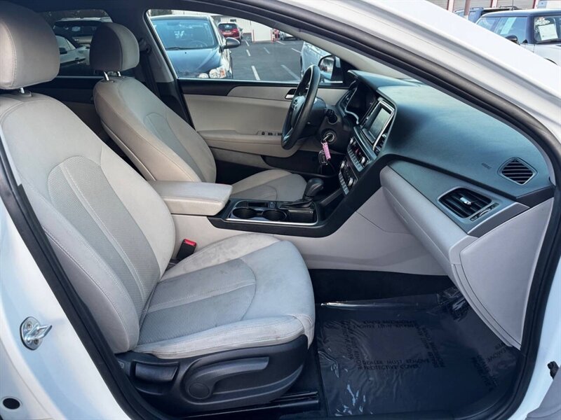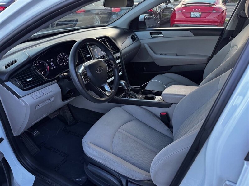 This 2018 Hyundai Sonata SE comes equipped with a reliable 2.4L I4 engine that delivers 185hp and 178ft. lbs. of torque. The exterior is finished in a sleek Quartz White Pearl color, complemented by a stylish Black interior. This sedan offers a fuel-efficient performance, achieving 25 MPG in the city and 36 MPG on the highway. The vehicle is in excellent overall condition, showcasing Hyundai's commitment to quality and durability. Standard factory features include a user-friendly infotainment system, Bluetooth connectivity, keyless entry, power windows and mirrors, cruise control, and a suite of advanced safety features to ensure a smooth and secure driving experience. Vast Auto Sale 2400 Fulton Ave Ste A SACRAMENTO, CA 95825 (916) 488-1200